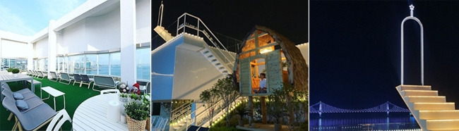먼저, 호텔 내 카페 '별침대 카페'와 루프탑 '별카이'는 바다라는 지리적 특성을 적극 이용합니다. 바다를 스크린처럼 바라보는 계단식 구조와 머리 위로 쏟아지는 하늘이 기다리는 곳들이죠.