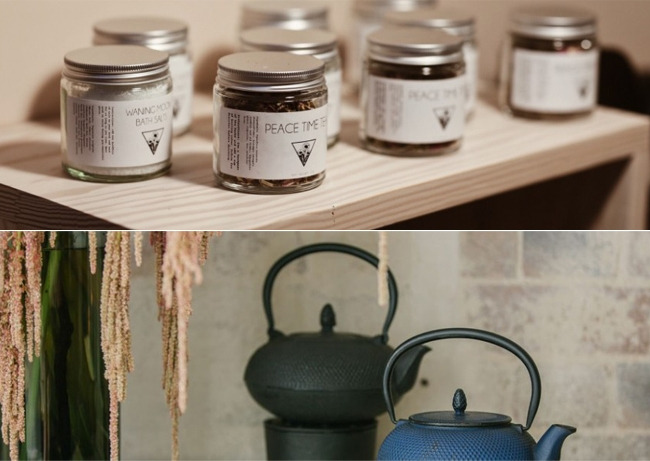 한편 이곳을 구성하는 또 하나의 공간 스토어는 에코 제품들과 지속 가능한 친환경 제품들로 채워져 있습니다. '와일드 세이지(Wild Sage)', '팻 앤드 더 문(Fat and the Moon)', '어니스트 스킨케어(Honest Skincare)' 등과 같은 브랜드들을 셀프 홈 케어와 명상 수련을 위해 판매합니다. 특히 'Sustainable, ethical, environmental'를 콘셉트로 한 브랜드들에 집중하여 명상의 목적과 부합한 라이프스타일을 추구하도록 도와줍니다.