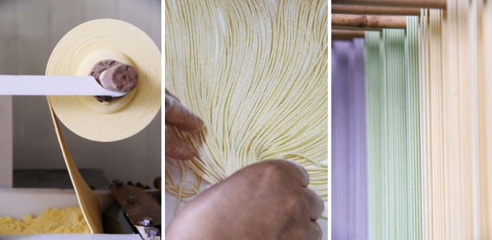 첫 번째는 모든 국수를 정통 방식 그대로 막대기에 널어 태양 볕에 말리는 것입니다. 그리고 두 번째는 바로 자연의 천연 재료를 국수 원료에 포함시키는 것이었습니다. 국수는 간편하고 배불리 먹을 수 있는 대신 소화가 금방 되고 영양적인 면에서 좋은 식재료는 아닌 것에 주목한 것입니다.