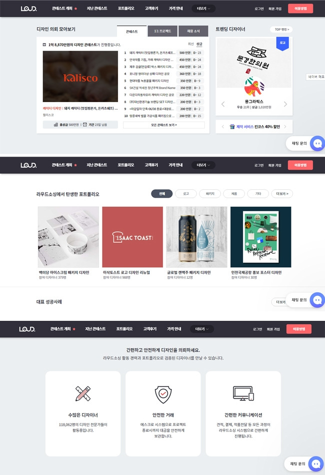 일을 찾는 디자이너와 디자이너를 찾는 클라이언트 사이의 다리가 되어주는 플랫폼 '라우드 소싱'을 소개합니다. 단순 인재풀 시스템이 아닌 1 : 多 공모전 기반의 자유로우면서도 체계적인 온라인 플랫폼 이야기를 들어보세요.