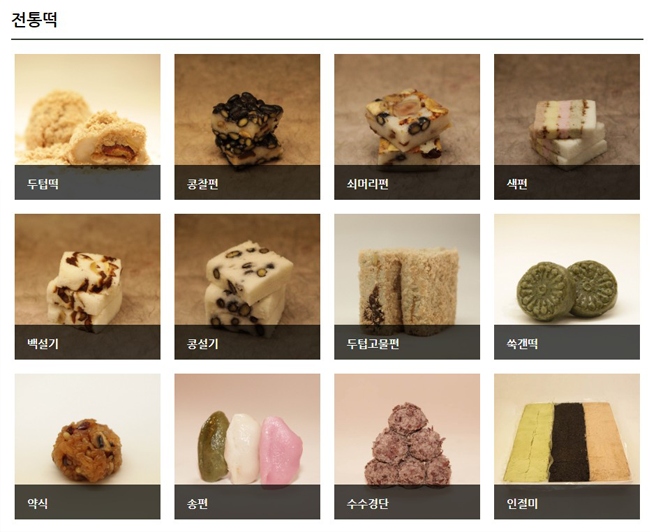 떡도 마찬가지입니다. 쉬이 말해 '무지개떡'이라 부르곤 하는 '색편', 밤, 대추 단밤고지 등을 찹쌀에 넣어 익힌 '쇠머리편' 등 진짜 이름을 잘 몰랐던 익숙하면서도 새로운 떡들이 준비되어 있습니다.