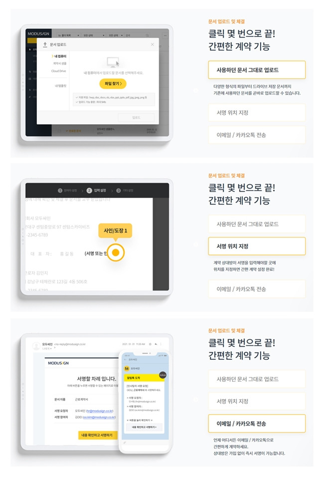 세 번째로, 별도 프로그램의 구축이 없이 클라우드 기반으로 계약서가 작성되기에 더욱 편리합니다.