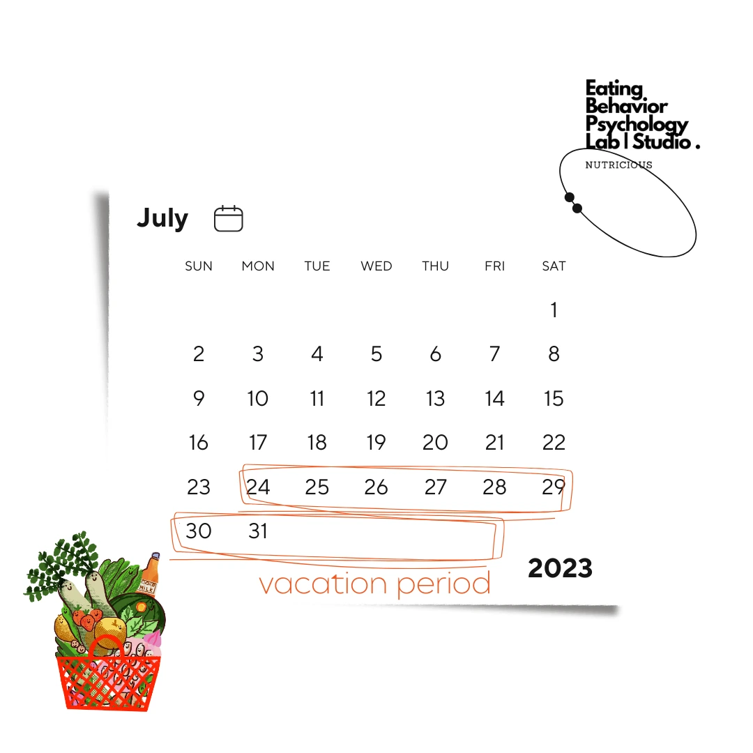 그래서 7/24부터 8/4까지 뉴트리셔스는 잠시 휴지기를 가질 예정이에요. 새로운 영양상담 문의와 교육 문의는 돌아오는 대로 바로 답변드리겠습니다 :)