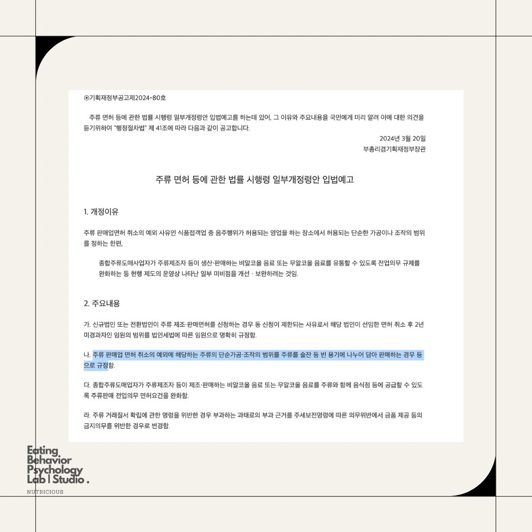 잔술 허용 시행령 개정안은 우리 삶에 어떤 영향을 미칠까?