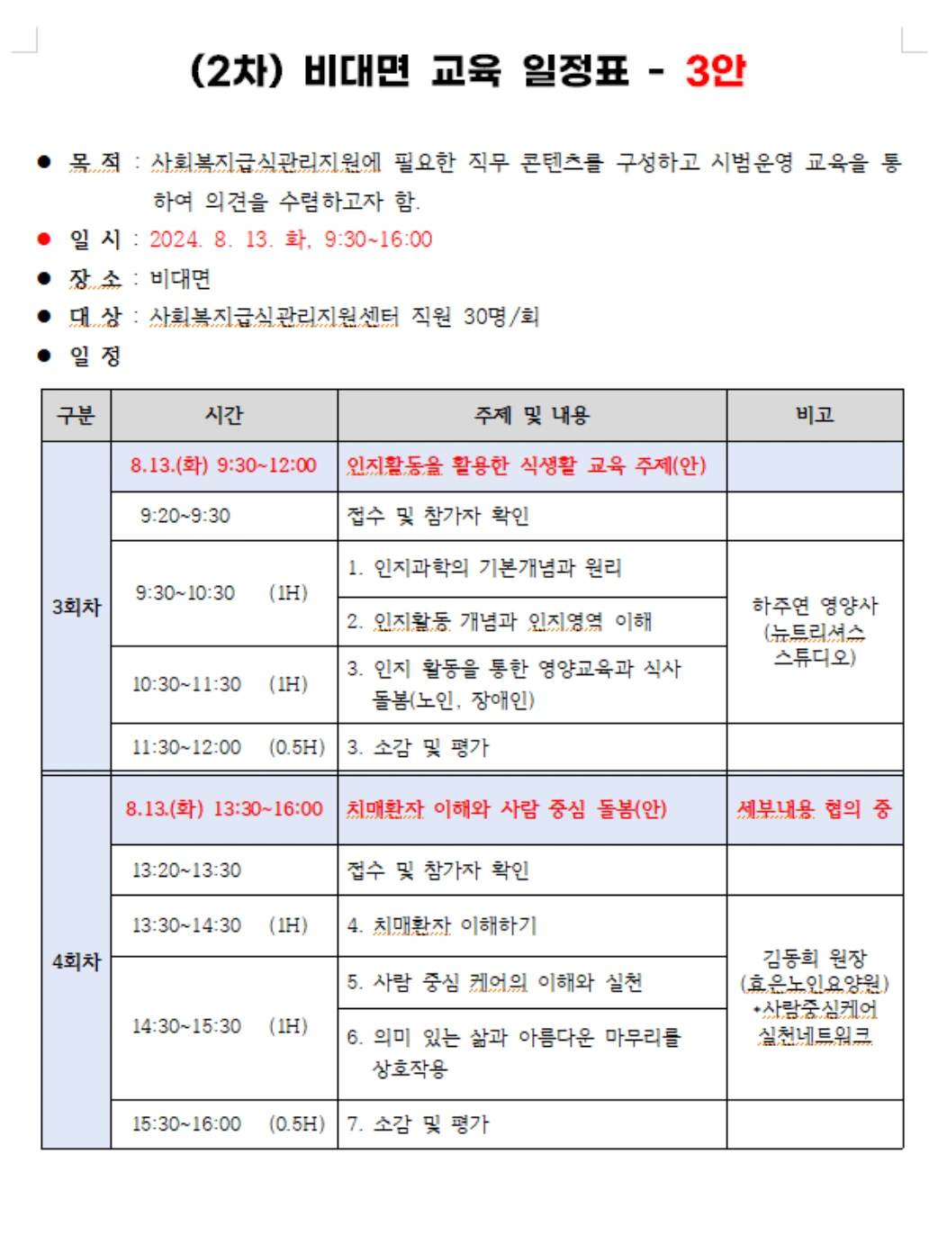 사회복지급식관리지원센터 직무 콘텐츠 교육