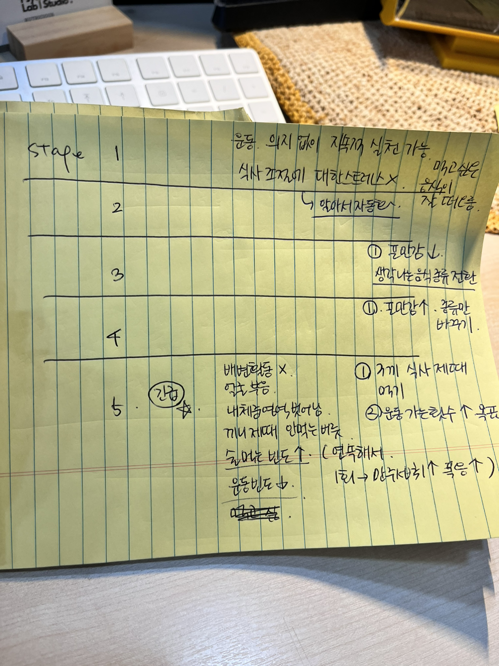 체중 외에도 내 일상이 변하고 있음을 캐치할 나만의 체크포인트를 정해두면 1. 어떤 걸 2. 얼마큼 수정해야 하는지 빠르게 자각하고 실천할 수 있습니다.
