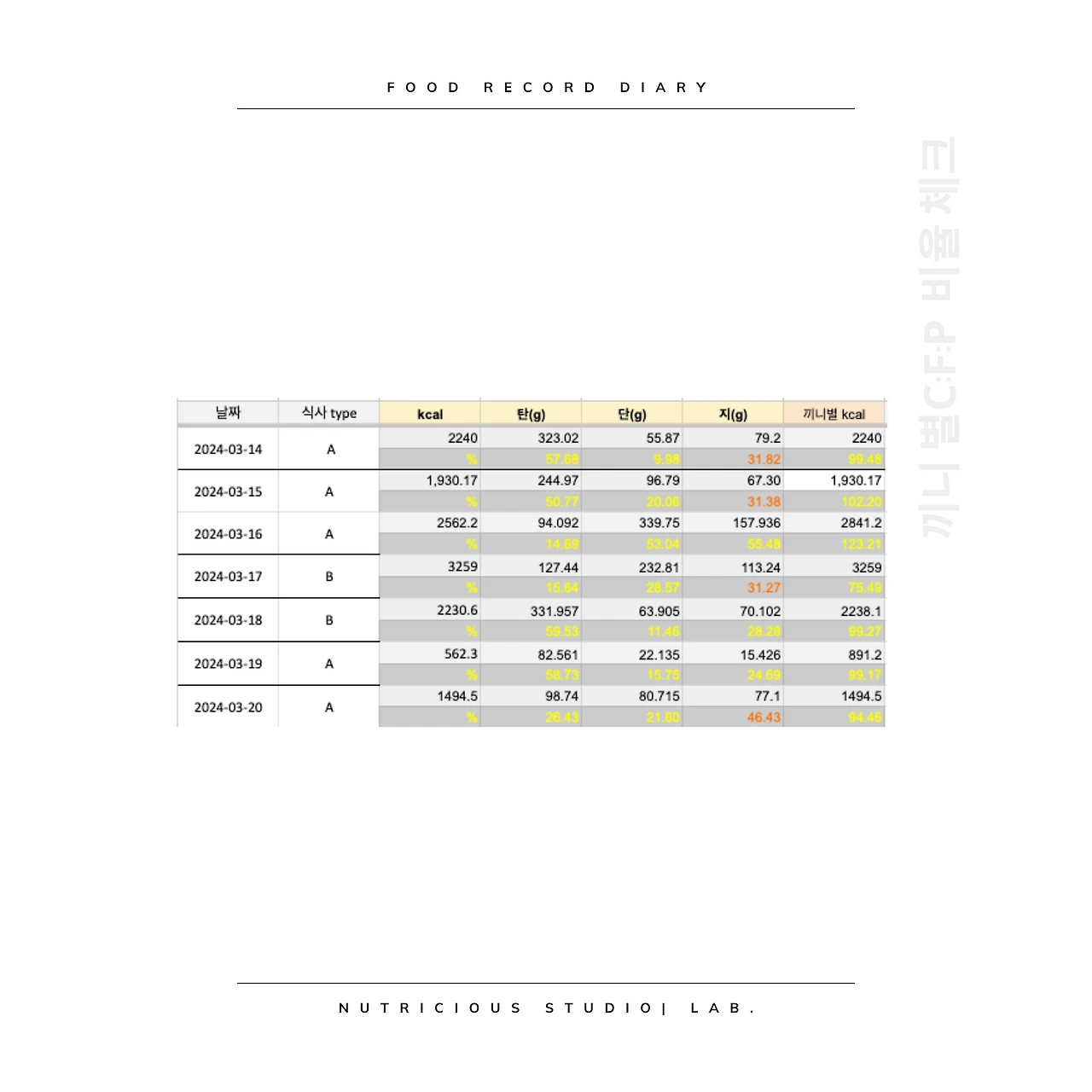 평균 탄단지(C:P:F) 비율 확인하기