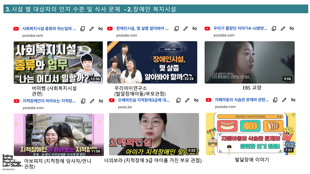 영양사 선생님들이 대상자들을 이해할 수 있도록 추천한 유튜브 채널들