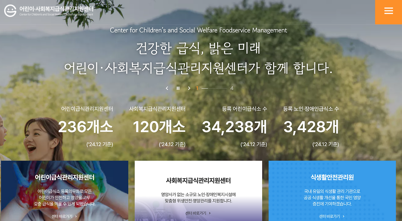 어린이 사회복지급식관리지원센터 홈페이지 https://dietary4u.mfds.go.kr/