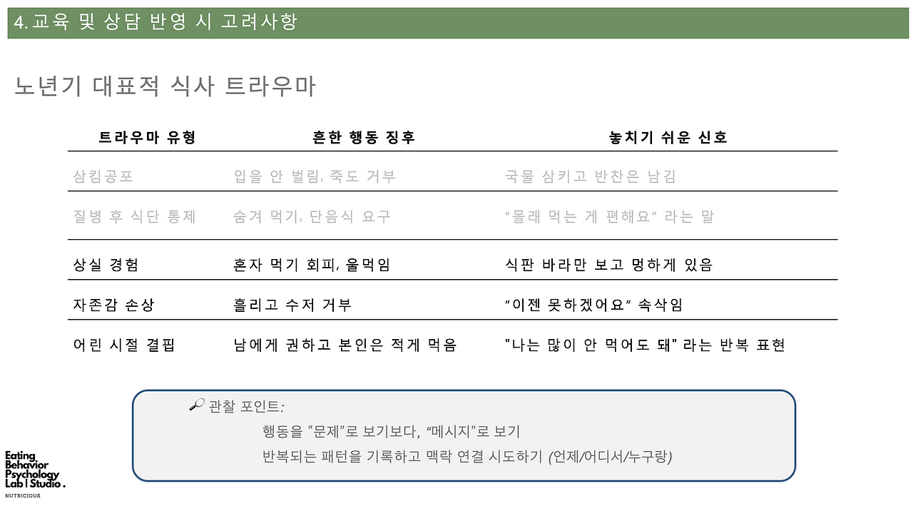 상담 진행 시 고민해볼 '식사 감정, 트라우마' 관련 요소