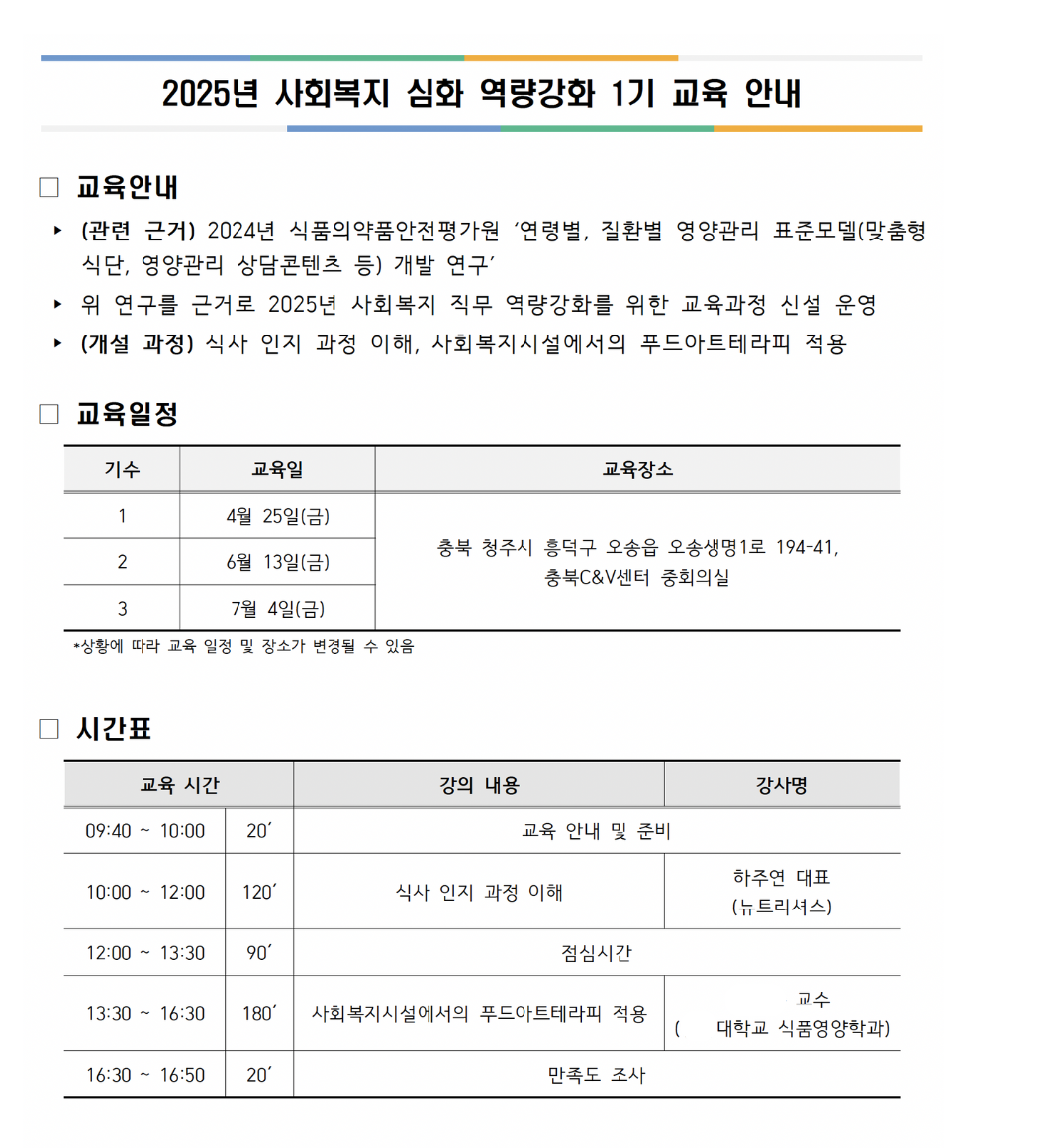 시범 운영 교육 (2024), 사회복지급식지원관리센터 교육과정 1기 (2025)