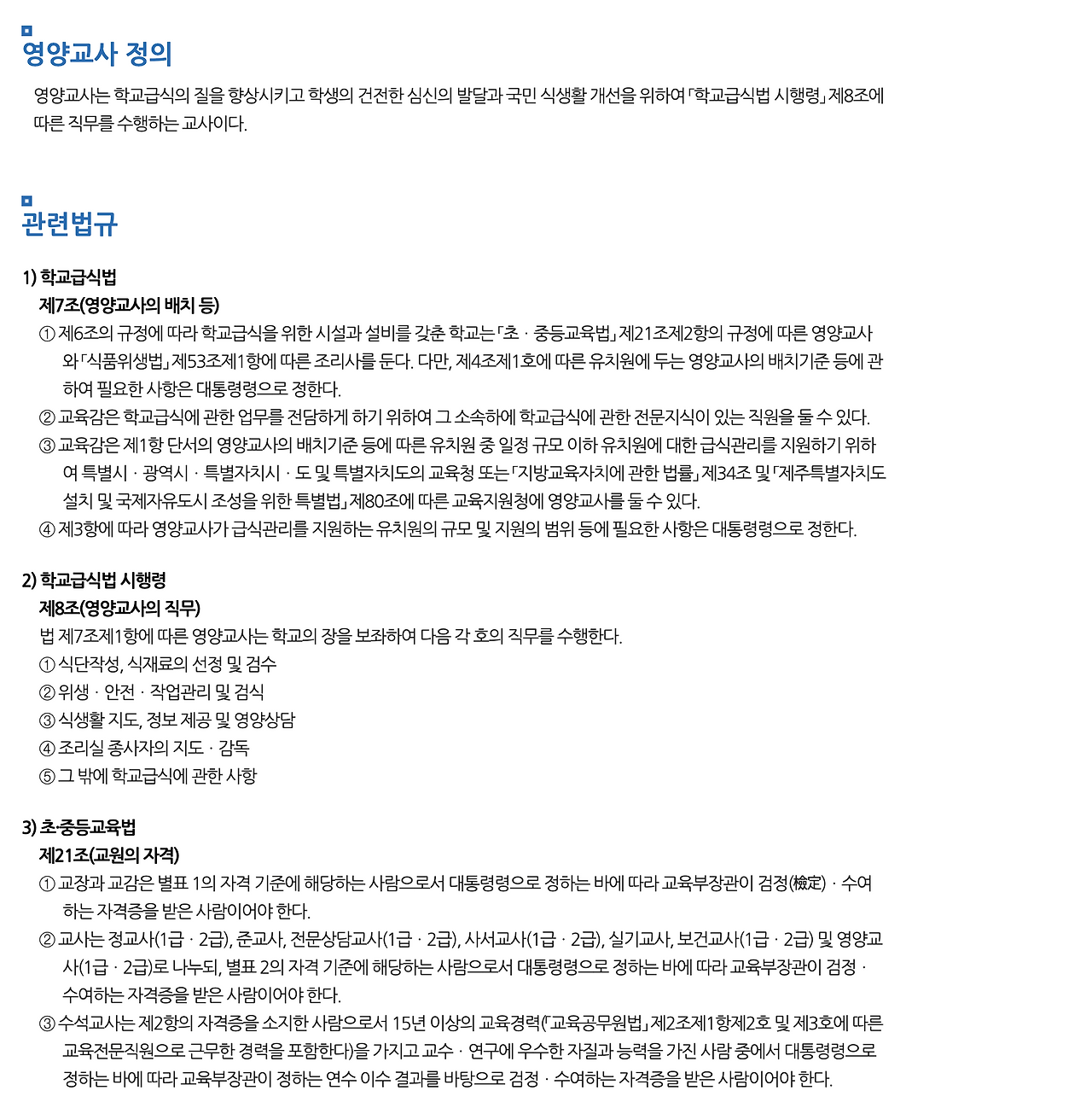 영양교사 1급 정교사 자격연수 특강