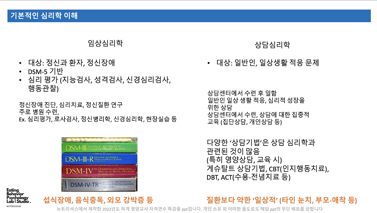 심리학 이해 – 교육이 끝나고도 자료를 찾아볼 수 있도록 심리학 분야와 뇌과학 분야에 대한 설명.