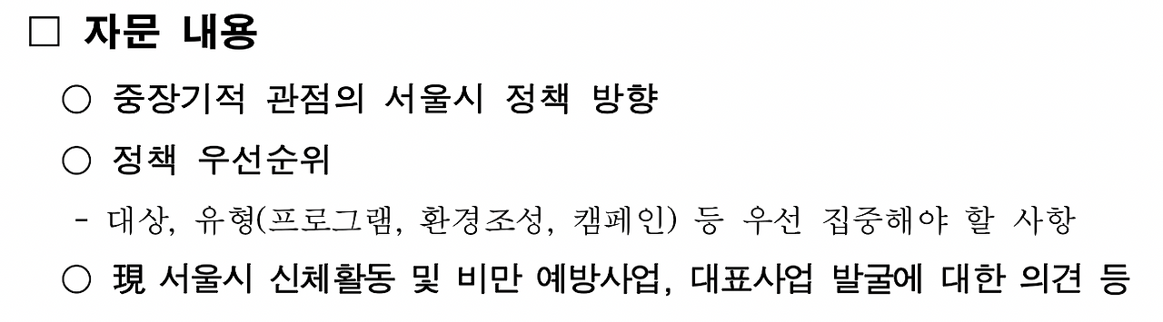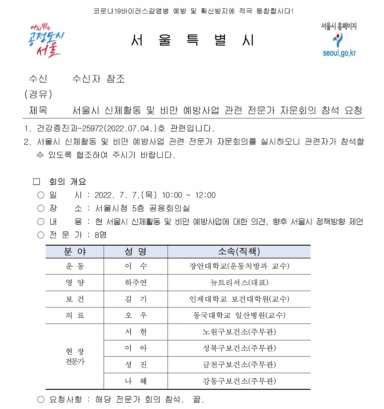 서울시 신체활동 및 비만 예방사업 관련 전문가 자문회의 (2022) - 주최 : 서울시