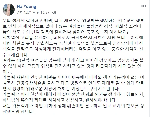 4) 천주교의 입장을 다루는 것은 그나마 something new에 가까웠고 <김현정의 뉴스쇼>도 이 방식을 택했다. 천주교 주교회의가 법적 처벌을 운운할 게 아니라 '괴롭지만 시대적 아픔의 표출이라고 본다'는 이야기를 했다면 와우 이것이야말로 홀리함 아닌가하며 감탄했을 것이다. (하지만 그런 입장이었다면 이 방송이 전파를 탔을지 의문이다) 나는 신실한 종교인들이 성체에 각별한 의미를 부여하는 것은 이해한다. 자기가 종교인이 아니더라도 성체를 신성시하는 가톨릭 신도들의 신념을 존중하는 사람이 더 많아지면 좋은 사회라고도 믿는다. 하지만 천주교 주교회의 인터뷰는 사람들로 하여금 가톨릭 내부의 역사적+동시대적 여성혐오만 찾아내고 확인하게 하는 역할을 했을 뿐이다.