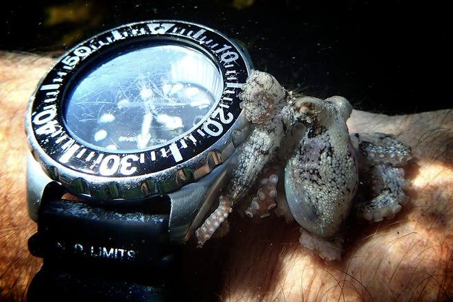 한 번의 접촉이 일어난 뒤, 두 사람의 움직임은 거의 무도회에서 춤을 추는 커플을 방불케 한다. 포스터의 손을 여러 개의 다리로 감아올리며 함께 바다 속을 헤엄치고, 때로는 거의 수면까지 따라오기도 한다.
