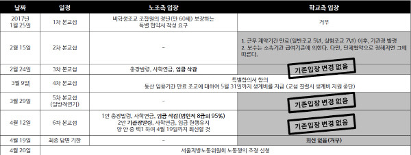 그런데 2016년 감사원에서 서울대의 비정규직법 위반 의혹을 조사한 뒤, 서울대는 비학생 조교 임용 기간을 2년으로 제한하기로 한다. 이에 따라 조교들이 대량해고될 위험에 처했다. 다행히 대학노조 서울대지부의 투쟁과 협상에 따라 지난 12월, 서울대는 비학생 조교들에 대한 고용 보장을 약속했다. 문제는 그 약속이 제대로 이행되지 않고 있다는 것이다. 서울대 측은 안정적인 고용을 보장하는 대신 약 1,000만 원가량의 연봉 삭감안을 제시했다. 노사간 협상은 결렬될 수밖에 없었다.