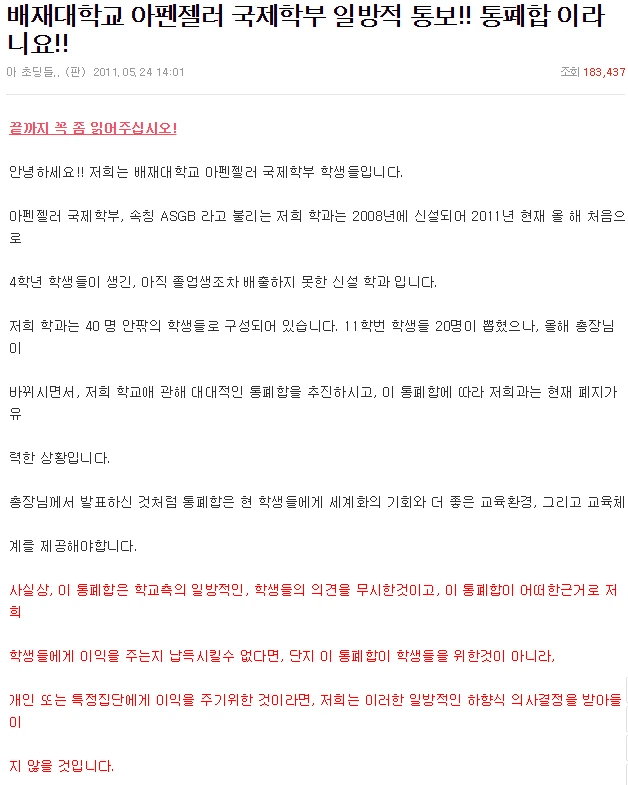 이렇게 허술한 방식으로 조사된 설문결과를 토대로 보고서 작성자는 결론에서 자못 심각하게 ‘위기’를 운운한다. “막대한 비용이 소요되는 대학교육이 낭비”되고 있기 때문에, “사회수요에 맞춘 대학정원 조정”이 필요하다는 것이다.