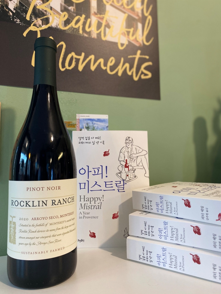 네. 다른 피노누아 보다는 바디감이 있는 편이고, 약간의 산미가 있어서 살짝 시원하게 마셔도 좋아요. 스모키 한 향에 바닐라 풍미가 은은하게 느껴져서 ‘아, 이게 가을이구나!’ 싶은 맛입니다. 음……. 같이 페어링 하기 좋은 책으로는 최근 효형 출판사에서 출간한 피터 메일 작가의 <아피! 미스트랄>을 추천드릴래요.