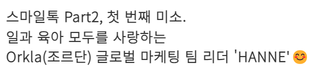 역시! 그렇다면 일과 육아를 동시에 잡은 슈퍼맨 한나 님께 “미소”이란 어떤 의미인가요?