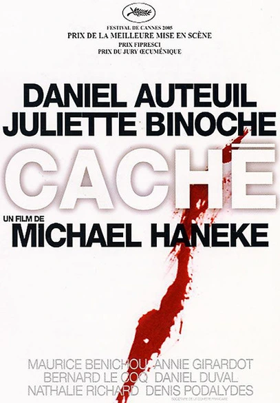 카메라는 관찰자의 시선에서 어떤 이들의 안온한 일상을 비춘다. 하지만 찰나의 순간에 따뜻한 빛이 비치던 장소는 차갑게 식어버린다. 부부는 카메라가 있던 곳을 향해 불안하고 다급한 발걸음으로 다가간다. 그들의 일상을 찍은 의문의 비디오테이프와 섬뜩한 낙서가 그려진 엽서가 잔잔한 물결에 돌을 던져 파동을 일으킨다. 집으로 배달된 것으로도 모자라 직장과 아들의 학교까지 침범하며 그들의 목을 옥죄인다.