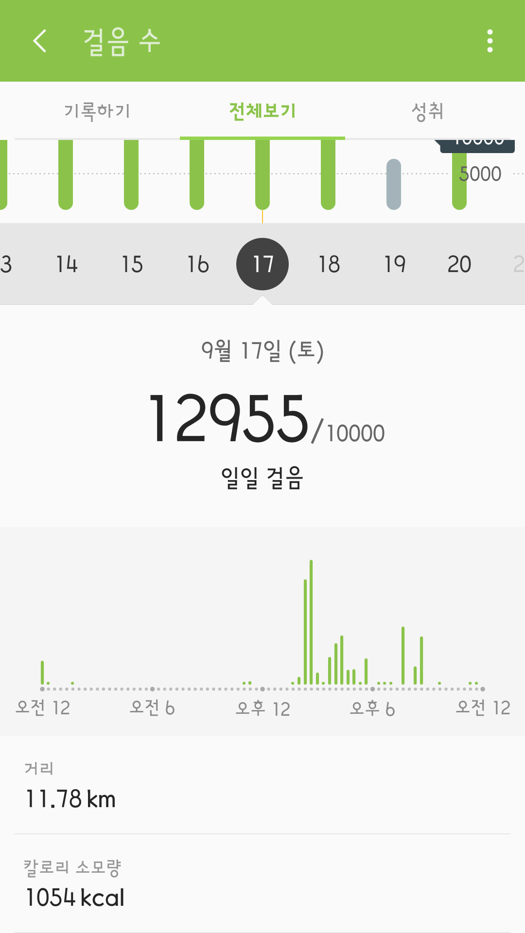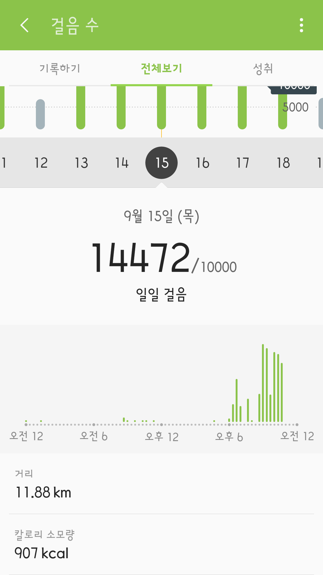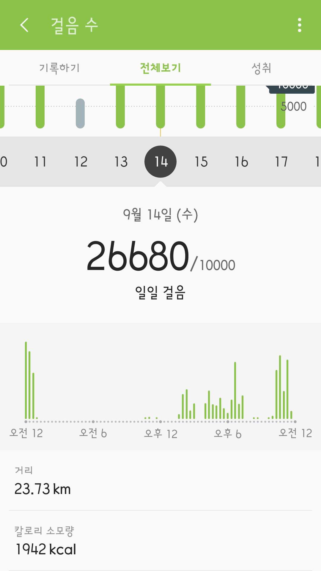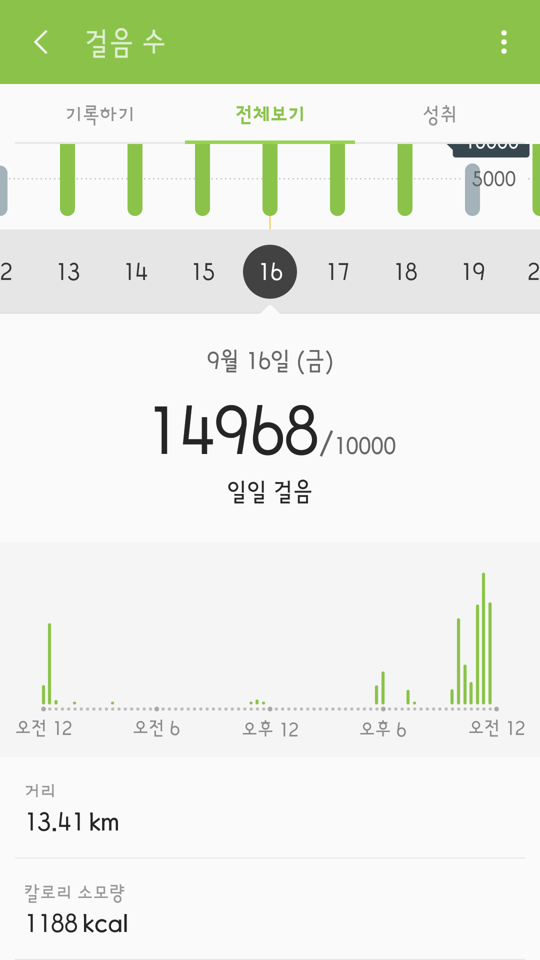 운동량을 기록한 것이다.