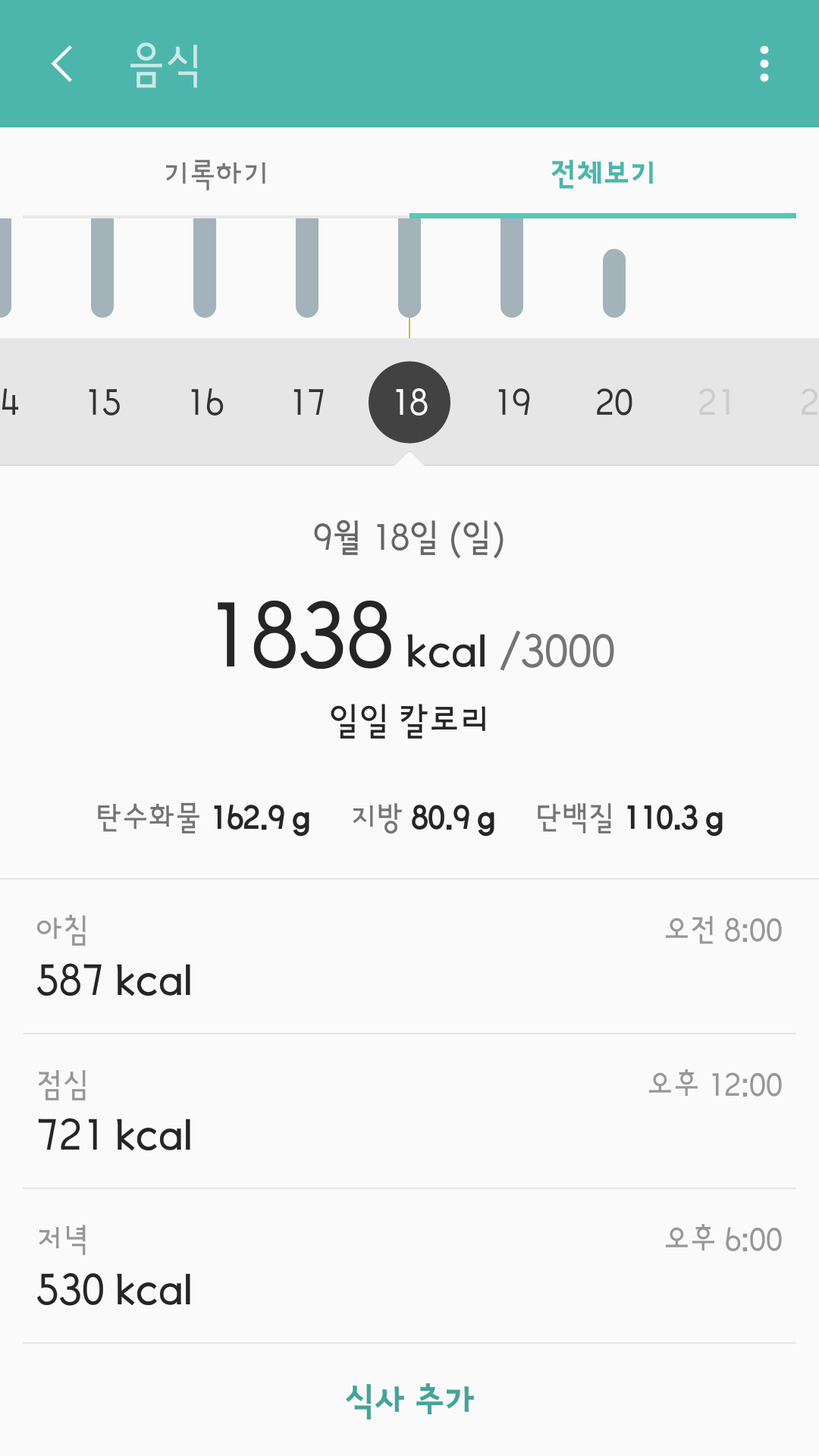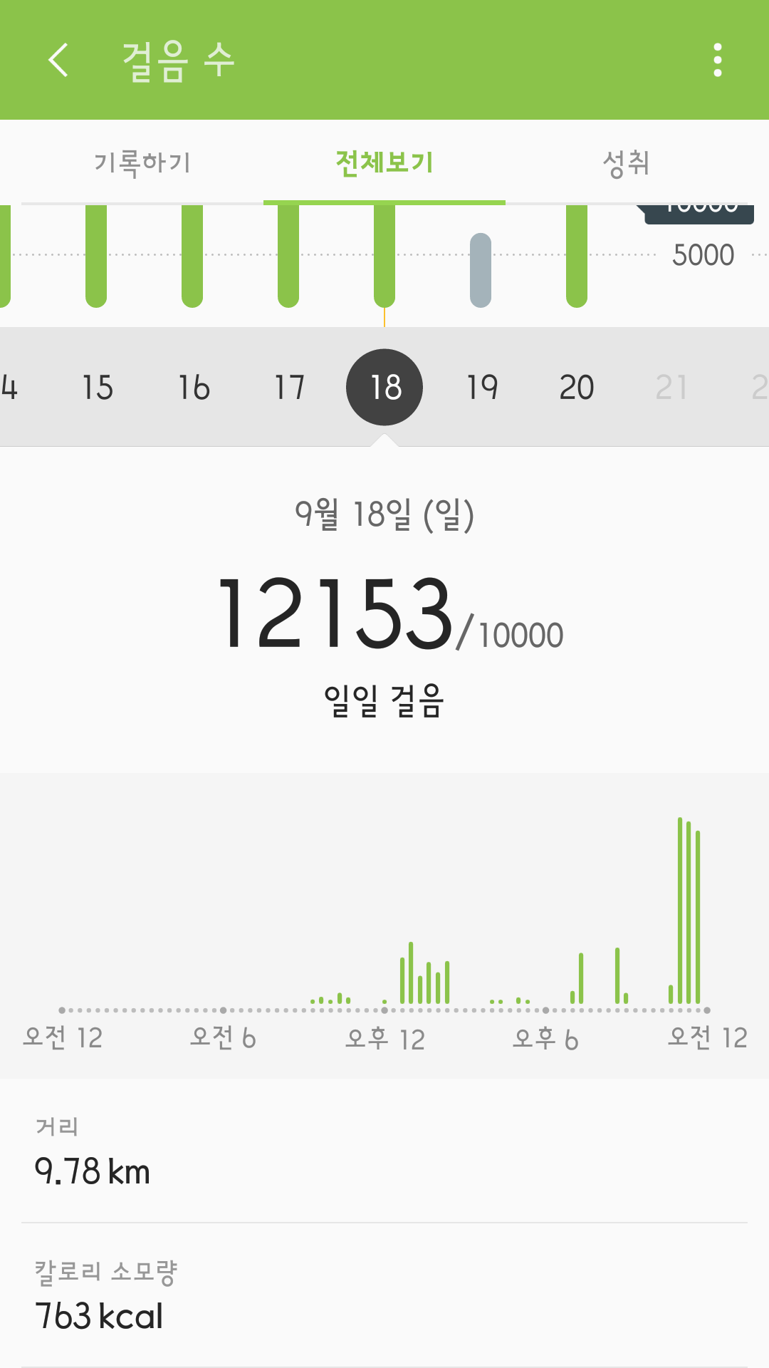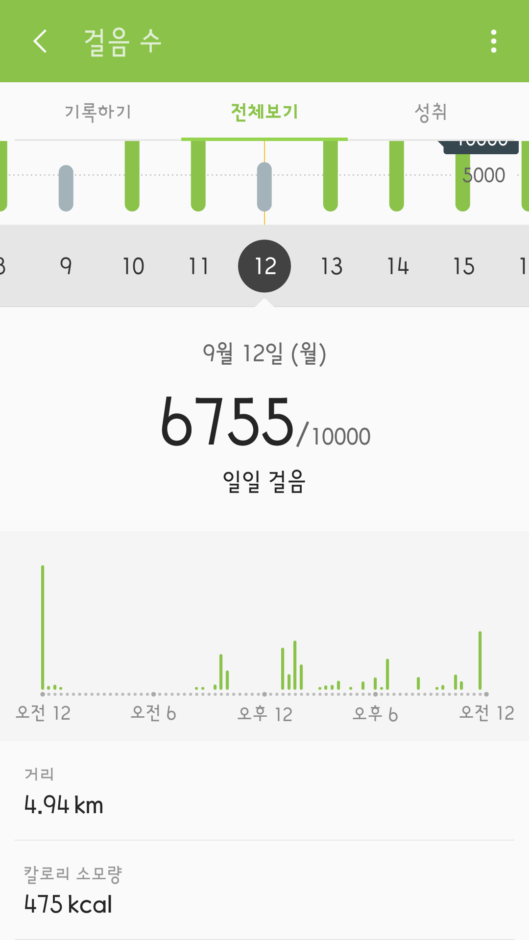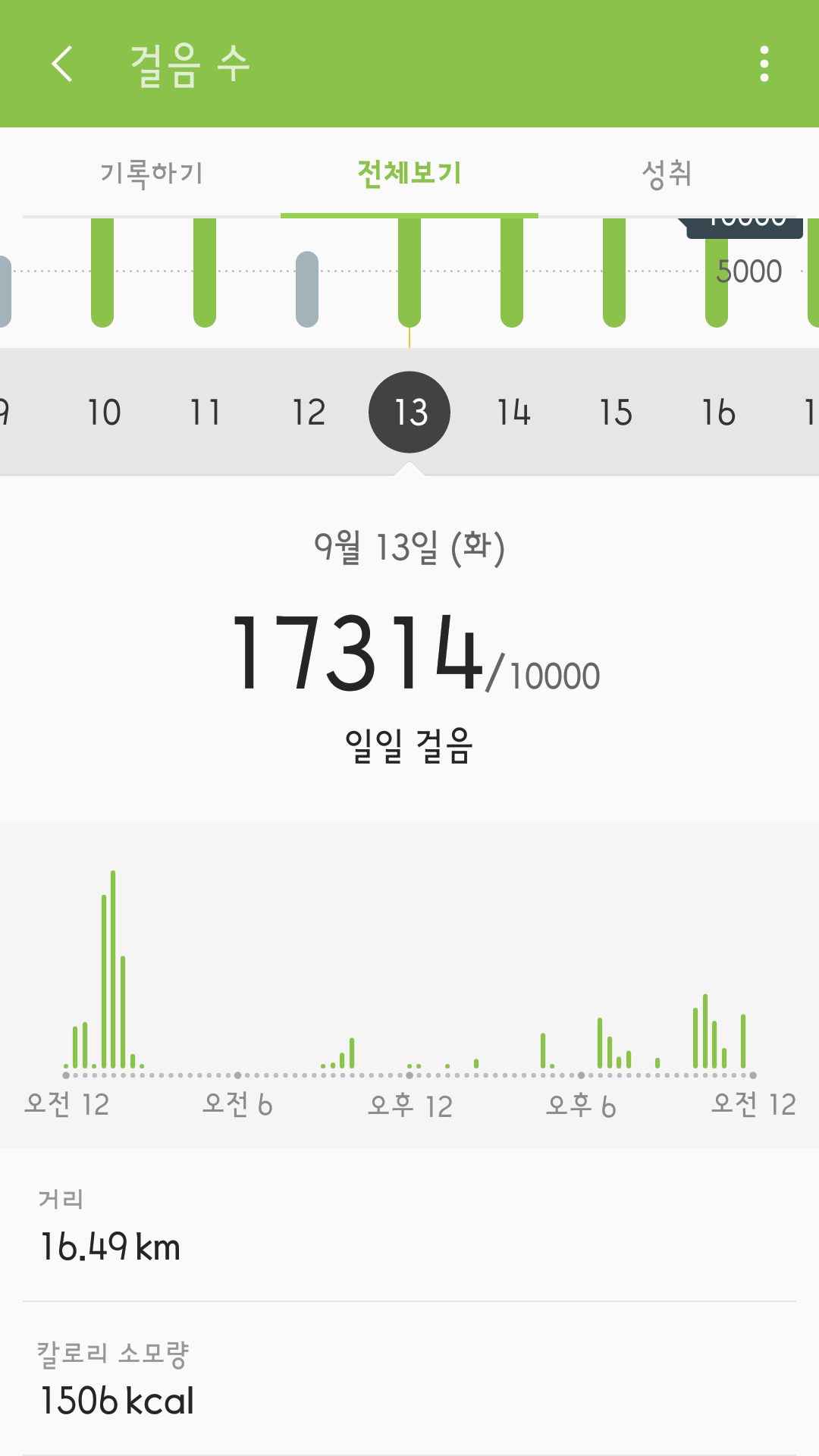 운동량을 기록한 것이다.