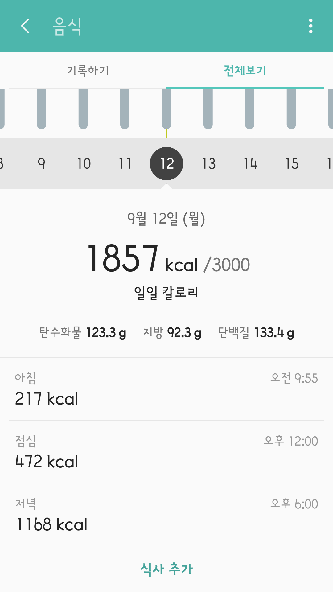 총 8.54km 운동 중 3km 뜀