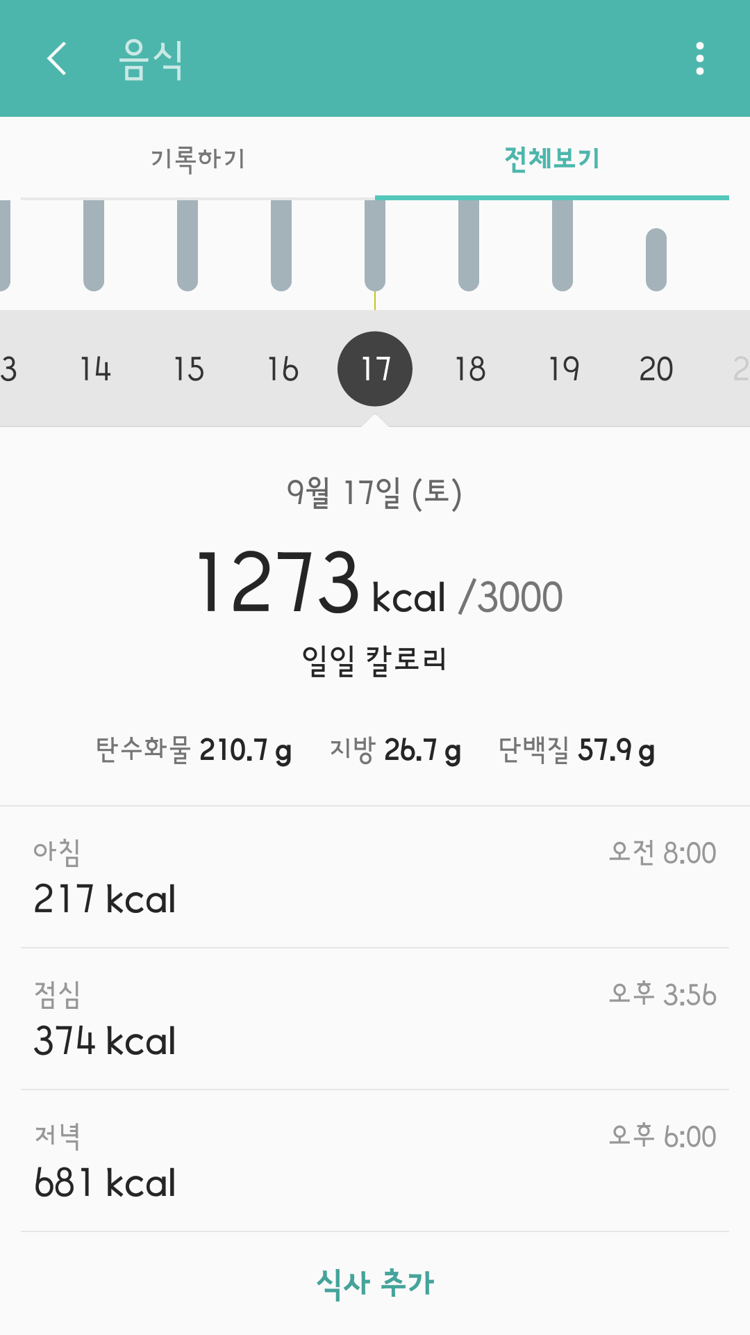 대신 끼니에 먹는 식사를 평소에 좋아하는 고기류를 먹었다.