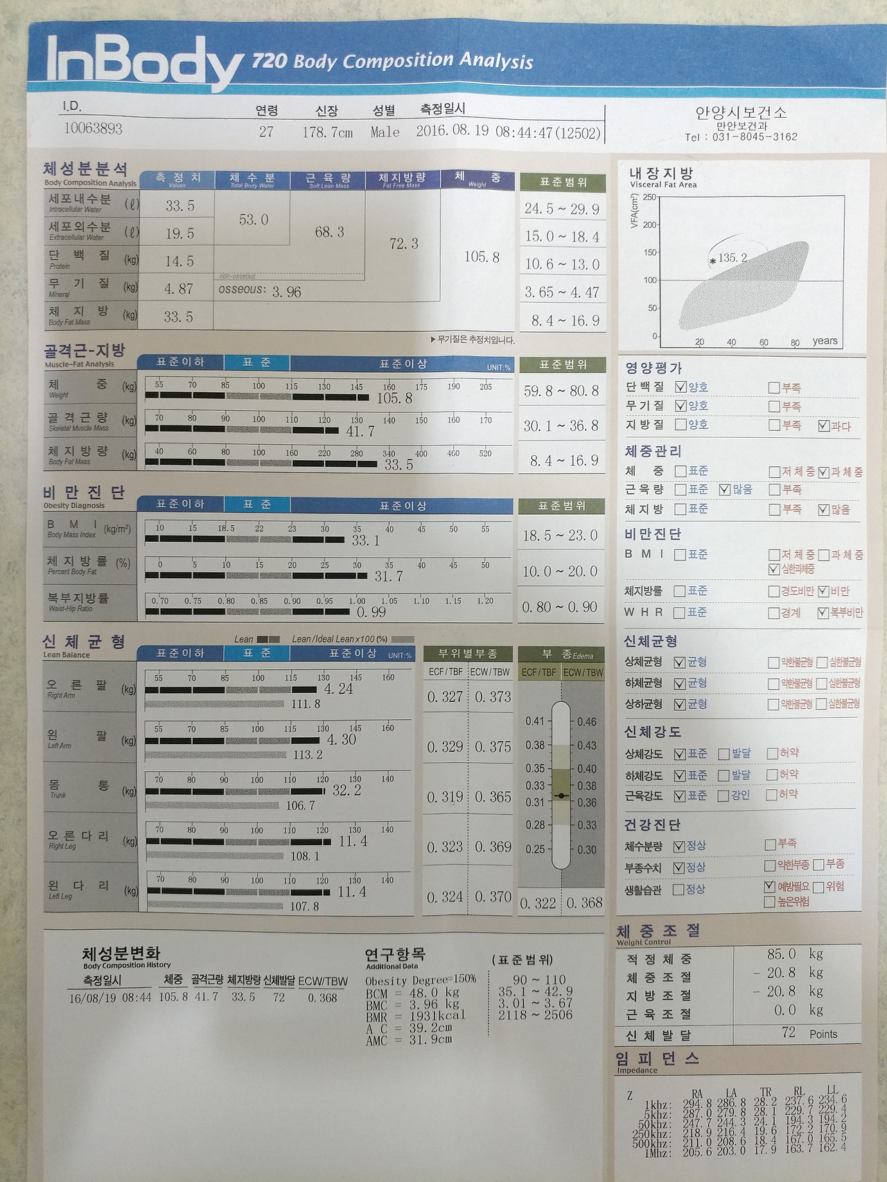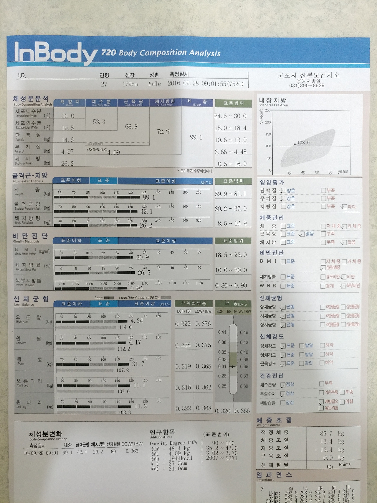 해당 보건소에는 인바디를 무료로 잴 수 있어서 좋았고, 그전에 쟀던 기록을 가져가면 비교하면서 상담해주셨다.