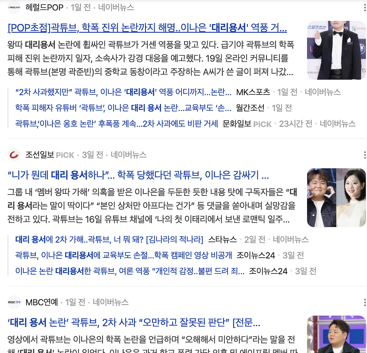 특히 많은 언론과 시청자들은 현재 곽튜브의 행위를 ‘대리 용서’라고 명명하여 비난하고 있는데, 이 사안에서 ‘용서’라는 단어의 사용은 꽤 흥미로운 지점이다.