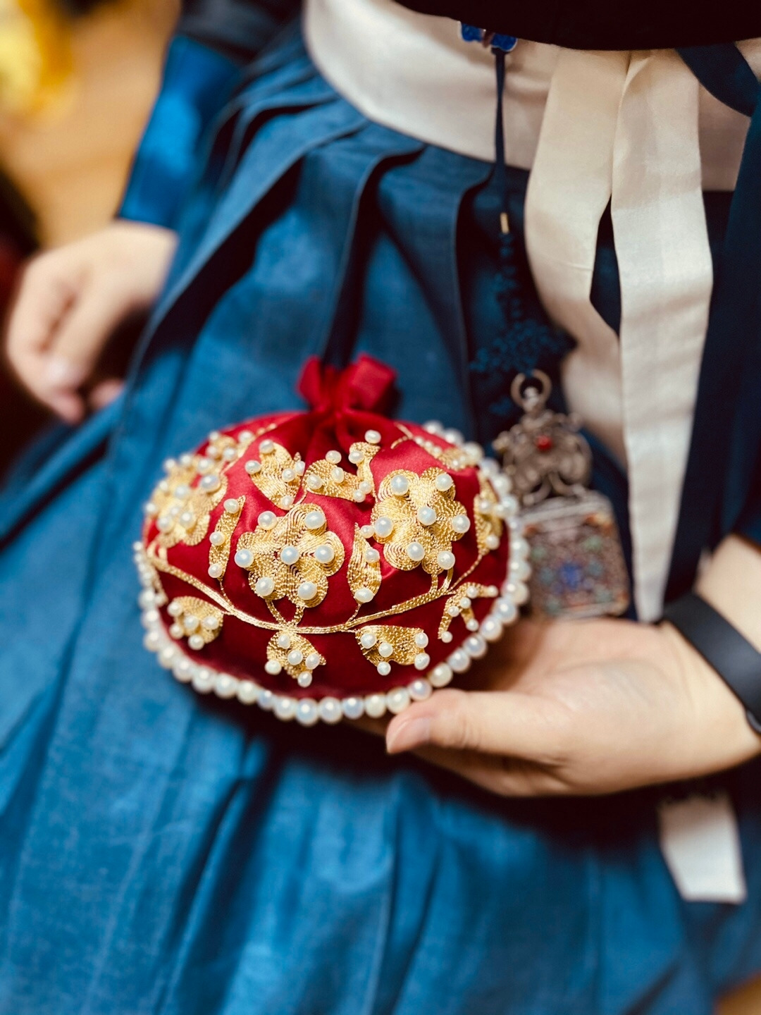 진주낭은 수십 개의 서로 다른 크기의 진주를 사용해야 완성되는 주머니이다. 금사로 수놓은 자수 이상으로 진주가 중요한 아이템이기 때문에 카메라에 비치는 모습을 고려하며 비율감 좋은 진주로 꼼꼼하게 골라둔다. 크기 하나하나를 도안 사이즈와 비교하며 배치한다. 우리는 천연진주를 사용해서 진주낭을 제작하기 때문에 매번 재료를 들일 때마다 조금씩 다른 진주의 퀄리티와 크기 때문에 고민이 많다. 간혹 진주 사이즈에 맞춰서 도안 자체를 다시 조정해야 하는 경우도 있다. 작은 주머니 하나에 신경 쓸 거리가 많아서 진주낭은 언제나 고가에 거래된다...... 협찬이 안된다는 뜻이다.