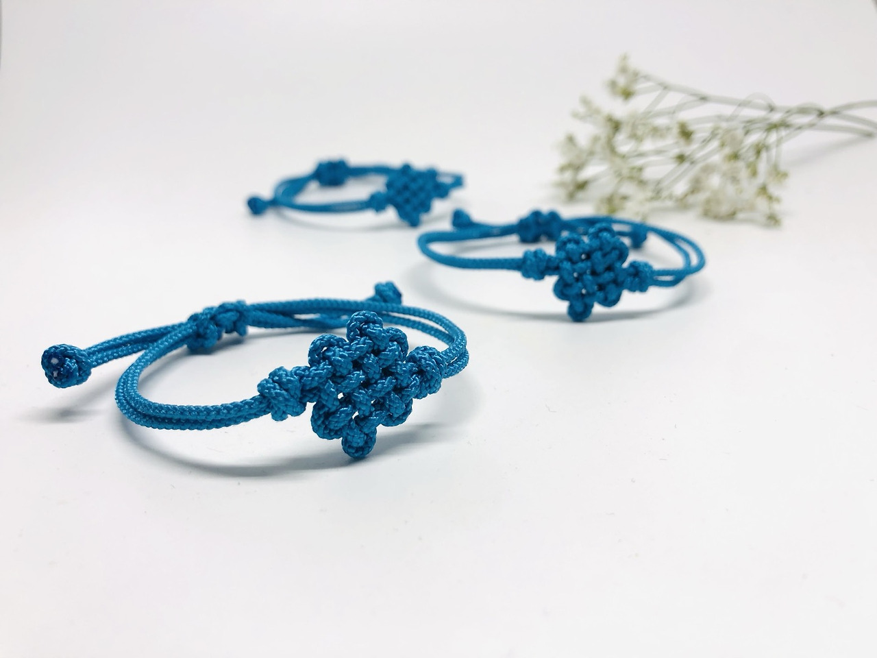 “부자재를 사용하지 않은 매듭팔찌는 여러 번 착용하면 매듭끈이 풀릴 수 있어요. 여분으로 몇 개를 더 만들어 드릴 테니 촬영 중에 파손이 있더라도 놀라지 마세요.”