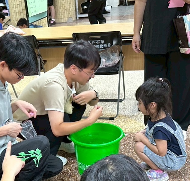 나는 ‘물속에 있는 유리병에 동전 넣기‘ 게임을 담당했다. 사실 작년에 동일한 체험을 담당했지만 그때는 대만에 온 지 채 한 달 즈음 지났을 때여서 중국어한 마디도 제대로 말하지 못했었다. 그래서 그냥 설명 피켓만 들고 있었고 아무 도움이 되질 못했다.