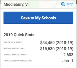 이 대학의 연간 학비는 5만4450달러, 기숙사비는 1만5530달러다. 총 학생 수는 2603명, 원서 마감일은 1월 1일.