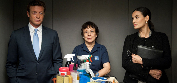 또 다른 문제적 캐릭터는 데미 무어. 그녀는 사이먼 베이커와 함께 영화의 초중반부터 등장하는데 이 영화는 그녀에 대해 별다른 언급이 없습니다. 그녀가 케빈 스페이시, 사이먼 베이커와 함께 회장의 주요 심복 3명 중 한 명이라는 것을 대화를 통해 간접적으로 전달하고, 이 부실 금융 상품의 잠재적 위험성에 대해 회장에게 1년 전 분명히 전달했다는 점. 관객이 그녀에 대해 아는 바는 이 두 가지밖에 없습니다. 그녀에게 특별히 정서적 애착이나 공감을 갖게 할 어떠한 장치도 결여되어 있습니다. 영화는 그녀를 특별히 악하게 그리는 것도, 특별히 억울하게 그리지도 않습니다. 그녀에게만큼은 관객의 감정이입을 자제하고 건조하게 관조하길 바라는 감독의 의도일까요? 하지만 영화 후반을 보면 또 그렇지도 않습니다. 영화 후반 회장은 이 사건의 희생양으로 데미 무어가 되기를 원합니다. 두둑한 보상을 약속하면서 말이죠. 영화는 밤을 새우고 동이 틀 때까지 창 밖을 바라보며 고민하는 데미 무어를 아름다운 미장센으로 담아냅니다. 자신이 버려졌다는 데에서 오는 심리적 충격, 앞으로 어떻게 행동해야 할지 등 많은 생각이 들 것입니다. 문제는 데미 무어의 캐릭터 구축이 부재하고, 그래서 관객과의 정서적 연결고리가 전무한 상태에서 인물의 고민을 꽤 긴 컷으로 보여줌으로써 설득력이 떨어진다는 것이죠. 위에서 언급한 것과 같이 처음에는 관객과 거리를 두던 캐릭터가 나중에는 가장 감정적인 캐릭터가 된다는 점은 영 받아들이기 힘든 지점입니다.