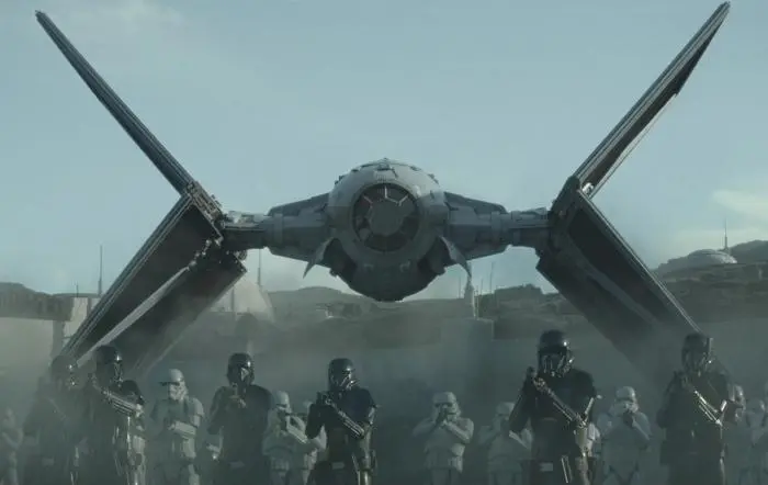 <안도르>의 또 다른 미덕은 <스타워즈: 로그 원>에서 처음 선보였던 지상에서 인물들이 올려다보는 하이 앵글을 통해 거대한 우주선이 뿜어내는 압도적인 위용을 기가 막히게 표현한다거나, CG가 아닌 직접 만든 비행기가 지나가는 것 같은 매우 실제 같은 촬영을 다시 보여줬다는 것입니다. <로그 원>이 보여준 매우 실제 같은 VFX 덕분에 인물과 대사가 지루하게 이어지는 <안도르>에 그나마 단비와 같은 역할을 해줍니다. <로그 원>의 메인 각본 및 재촬영 감독이었던 '토니 길로이'의 손을 제대로 탔달까요. <로그 원>에서 선보인 이런 기법은 스타워즈 의 매력을 한 단계 끌어올린 정말 탁월한 촬영이었습니다.