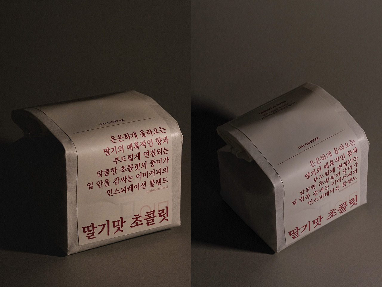 P 회의도 정말 많이 했거든요. 네이밍부터 여러 가지 고민을 많이 했습니다. 저희는 직관적인 맛을 전달하고 싶었어요. 매장에서도 항상 고민하는 부분인데요. 커피를 어렵게 인식하지 않았으면 좋겠어요. 특히 산미있는 커피를 처음 접했을 때 어떻게 좋게 느낄 수 있게 할까 고민을 많이 했습니다. 커피는 기호 식품이고 사람마다 느끼는 정도가 달라요. 학습적으로 늘 수밖에 없는 부분이 크다고 생각합니다. 커피 경험이 많지 않은 분에게 학습이 필요한 커피를 드리면 전달되지 않겠죠. 나는 잘 모르는구나 위축될 수도 있고요. 이런 부분들을 생각하면서 만들었고요. 이름에서도 복잡하고 추상적인 단어는 사용하지 않았어요. 긴 설명 필요없이 간단명료 하면서 확 와닿을 수 있도록 볼드한 글씨체를 사용했어요.