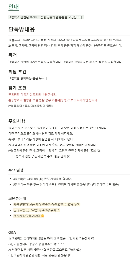 그림책에 대한 포스팅도 공유하고 관련된 이야기를 자유롭게 나눌 수 있으면 좋을 것 같아요.