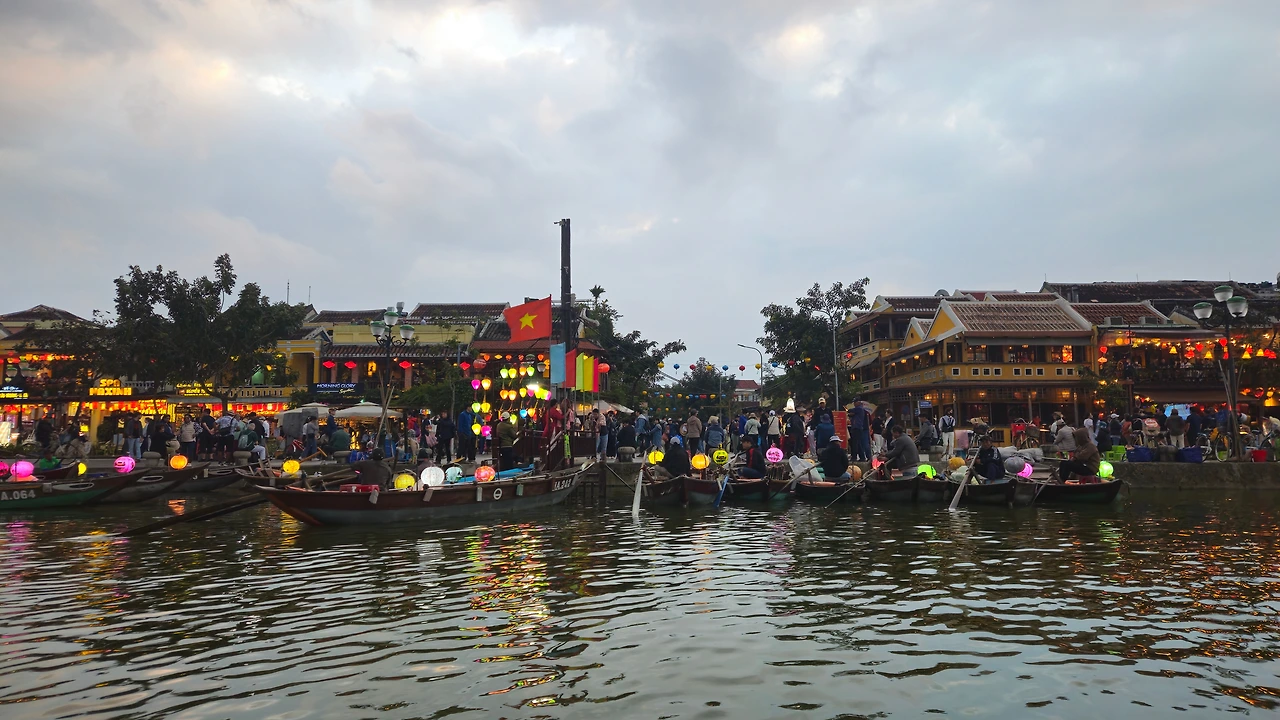 해가 지자 호이안 클라이맥스인 배를 타러 강가로 갔다.