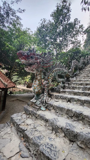 항무아(Hang Múa)는 더위를 피해 높은 곳에 휴양지를 만들었단다. 'Hang'은 '동굴', 'Múa'는 '춤'이라는 의미로 과거 딘 왕조 시대에 궁녀들이 왕을 위해 춤을 추던 장소란다. 용을 형상화한 계단이 끝없이 이어졌다. 베트남의 전통적 건축물들에는 빠지지 않고 용이 있는 것 같다.