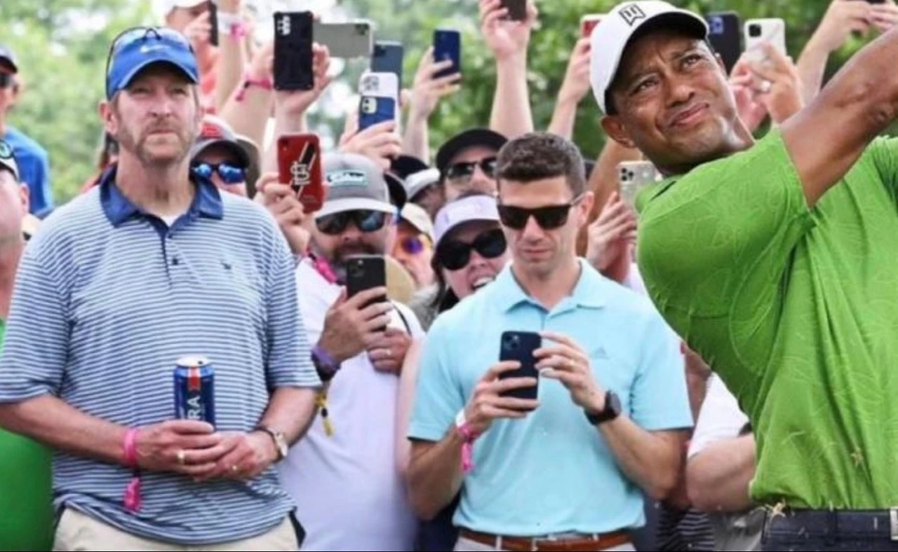사람들은 일제히 휴대폰을 들고 우즈의 스윙을 촬영하고 있었죠.