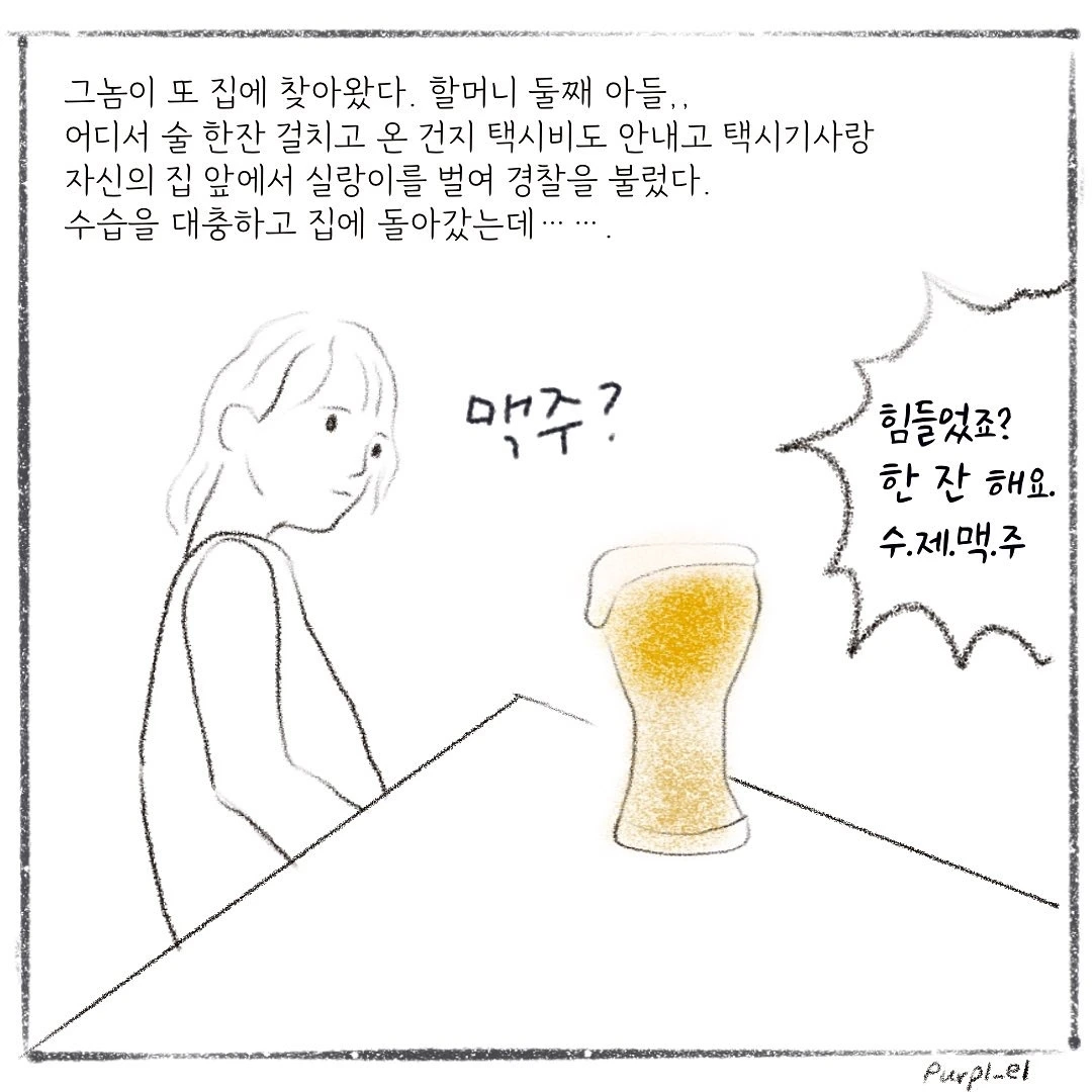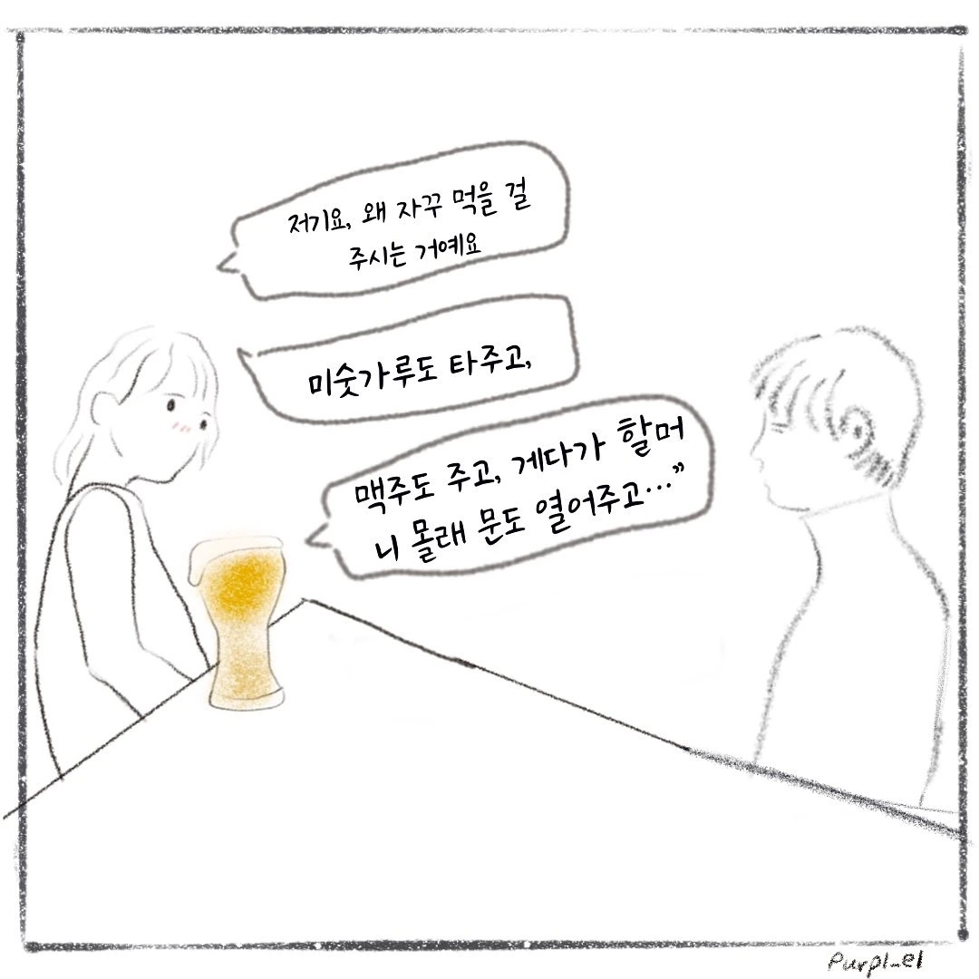 달콤 고소한 냄새가 풍긴다. 얼음 동동 띄운 미숫가루다. “얼음 가장자리에 각이 잡힌 걸 보니 만든 지 얼마 안 된게 분명해.” “할머니가 타...