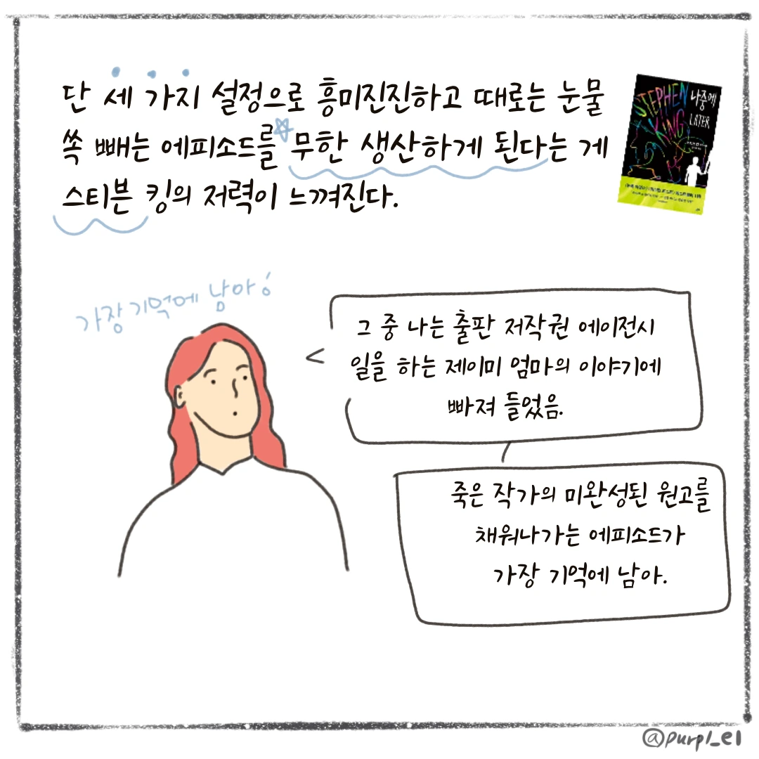 #스티븐킹 #나중에 #황금가지 #소설추천 #책리뷰 #만화 #일상 #책책책 #도서추천 #책추천해주는여자 #심리치료 #인스타툰 #일러스트 #디지털드로잉 #디지털크리에이터 #그림일기 #드로잉 #일상툰 #낙서 #그림 #그림스타그램 #공감 @민음사 #만화 #일상 #책책책 #도서추천 #책추천해주는여자 #심리치료