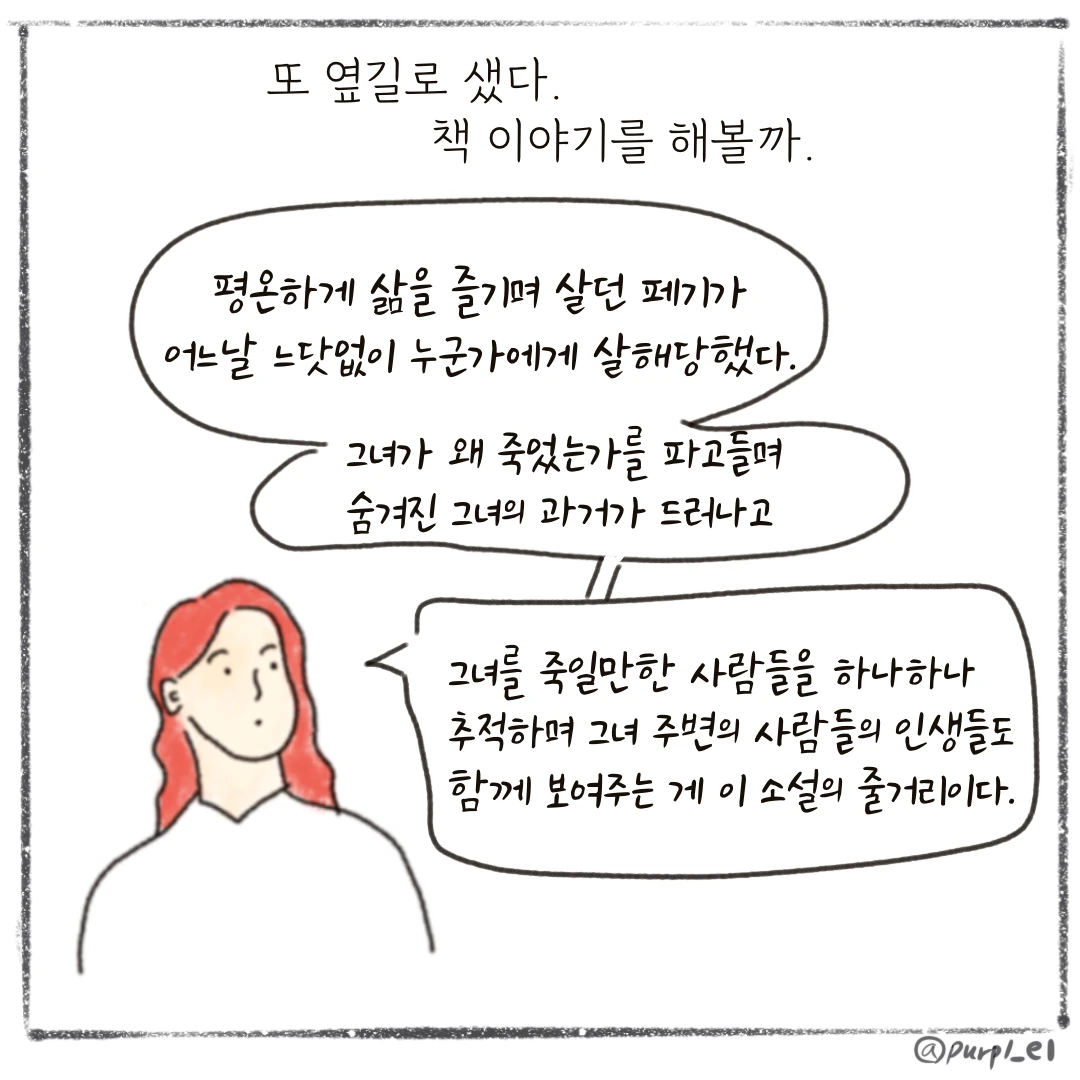 #엘리그리피스 #살인플롯짜는노파 #나무옆의자 #소설추천 #책리뷰 #만화 #일상 #책책책 #도서추천 #책추천해주는여자 #심리치료 #인스타툰 #일러스트 #디지털드로잉 #디지털크리에이터 #그림일기 #드로잉 #일상툰 #낙서 #그림 #그림스타그램 #공감 @나무옆의자 #만화 #일상 #책책책 #도서추천 #책추천해주는여자 #심리치료