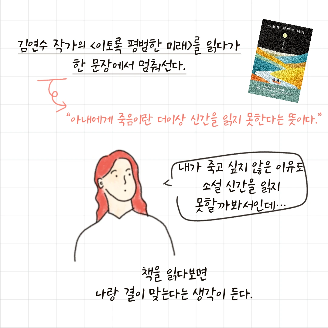 #이토록평범한미래 #소설추천 #책리뷰 #김연수 #만화 #일상 #책책책 #도서추천 #책추천해주는여자 #심리치료 #인스타툰 #일러스트 #디지털드로잉 #디지털크리에이터 #그림일기 #드로잉 #일상툰 #낙서 #그림 #그림스타그램 #문학동네 #만화 #일상 #책책책 #도서추천 #책추천해주는여자 #심리치료