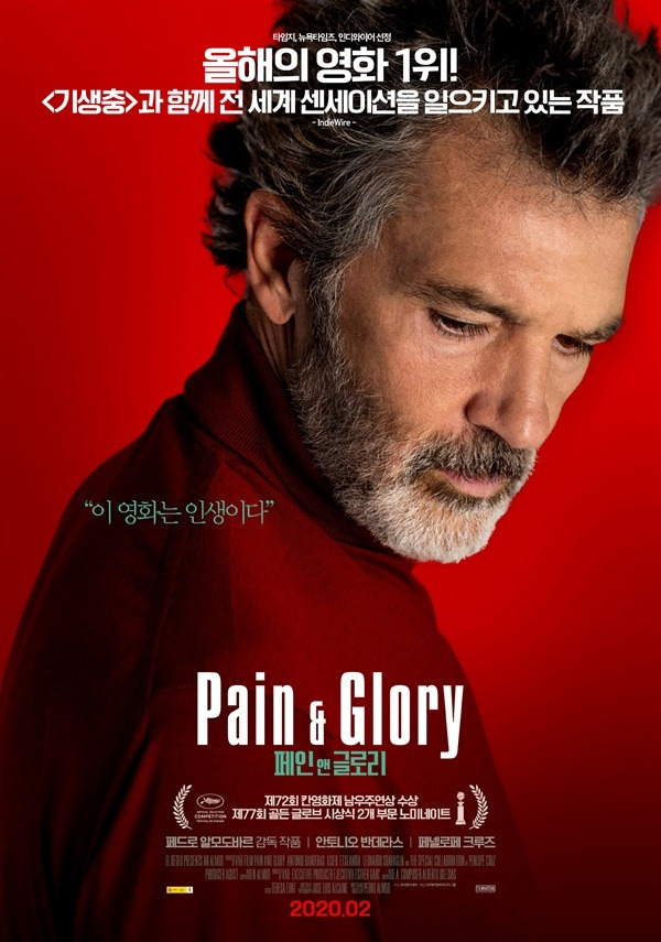 영화 <페인 앤 글로리>는 거장 감독이 과거를 회상하며 풀어놓은 아련함 가득한 이야기를 묵직하면서도 진솔하게 해석한 배우 안토니오 반데라스에 의해 완성되었다. 그의 설득력 있는 연기에 그는 제72회 칸영화제 남우주연상을 수상했다
