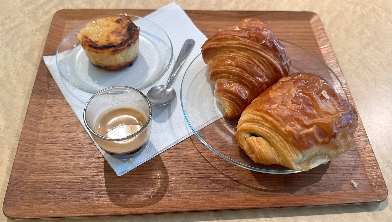 숙소에서 나와서 아침 먹을 곳을 찾고 있었는데 빵 굽는 냄새가 났다. 빵집이었다. 게스트하우스에서 밥을 먹지 않은 이유는 어젯밤에 체크인을 할 때 프런트 직원이 나가서 사 먹는 게 더 싸다고 했다. 주변에 맛있는 곳 많다고. 또 프랑스 하면 빵 아닌가. 나는 냄새를 따라갔다. 냄새 좋으면 맛도 있다. 날씨가 추워서 그랬는지 따뜻한 커피를 먹고 싶었다. 빵도 따뜻했다. 에그타르트, 크루아상, 뱅오쇼콜라. 최고의 조합이다.
