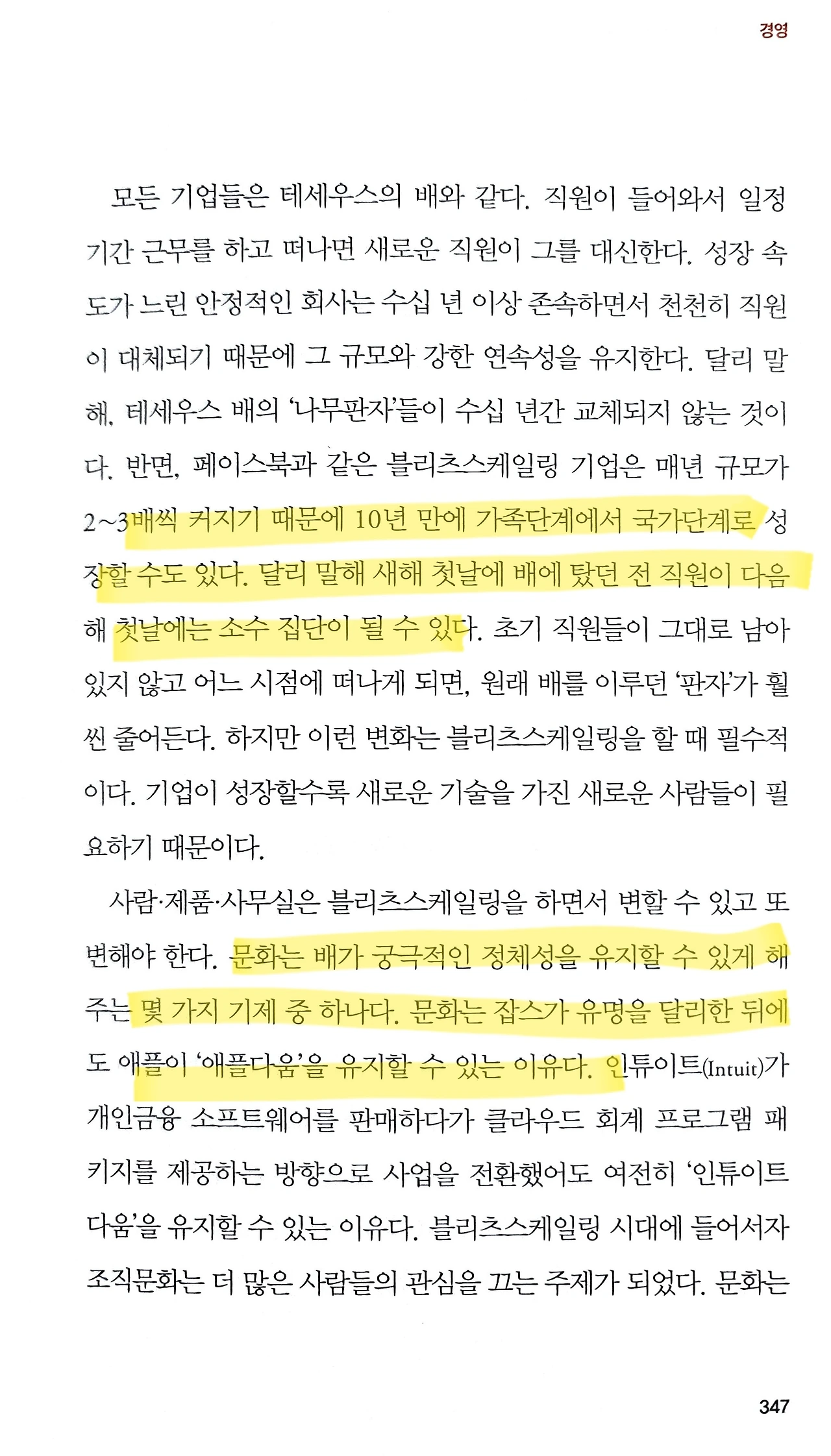계속해서 해당 챕터에서는, 또 '테세우스의 배'의 비유를 통해 조직 문화의 방향성에 대해서도 소개한다. 오랜 시간을 거쳐 전설처럼 내려오는 '테세우스의 배'라는 관념은 계속된다.