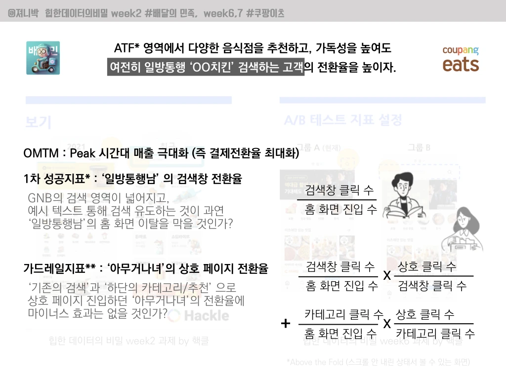 그런데 6주차) 쿠팡이츠의 홈 화면 검색 UX 관련 A/B 테스트 지표 설정 과제를 접한 뒤, 기시감이 들었다.